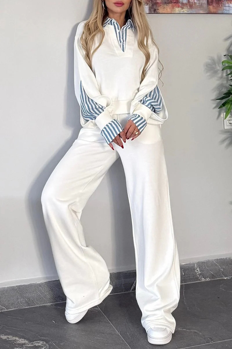 Lapel-collar Long-sleeve Shirt And Relaxed-fit Casual Hoodie Set