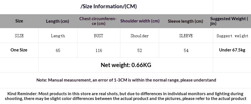 1. Asian sizes are 1 to 2 sizes smaller than European and American people. Choose the larger size if your size between two sizes. Please allow 2-3cm differences due to manual measurement. 2. Please check the size chart carefully before you buy the item, if you don't know how to choose size, please contact our customer service. 3.As you know, the different computers display colors differently, the color of the actual item may vary slightly from the following images.