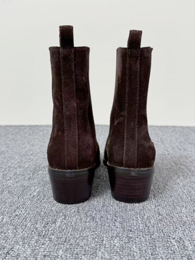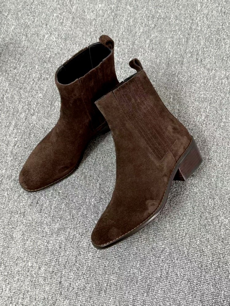 Mid-heel Chunky-heel Retro Square-toe Matte Leather Womens Boots