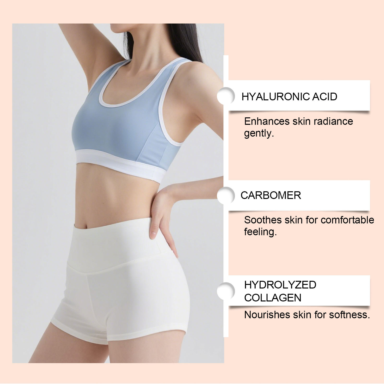 Ingredients: water, mineral oil, glycerin, hydrolyzed collagen, glyceryl stearate, 1,2- hexanediol, carbomer, arginine and hyaluronic acid.