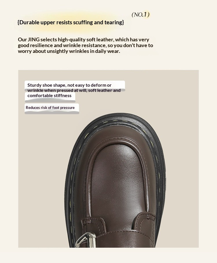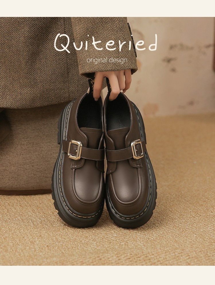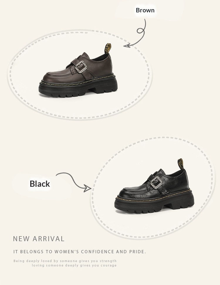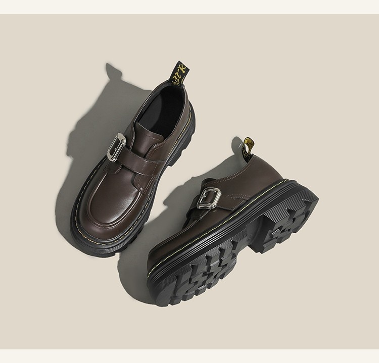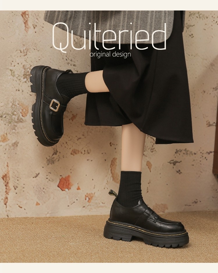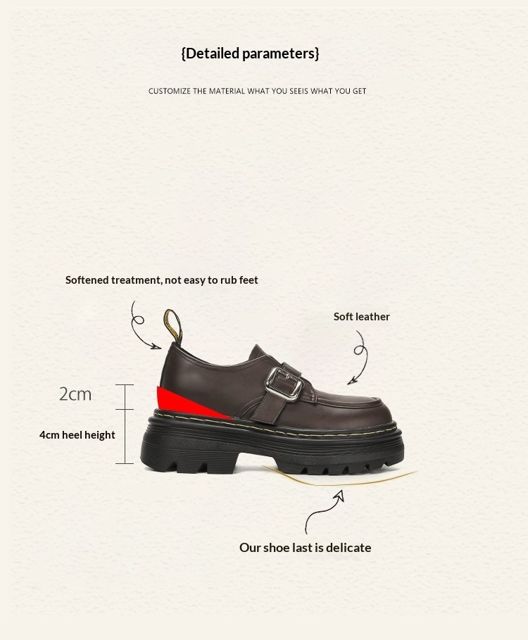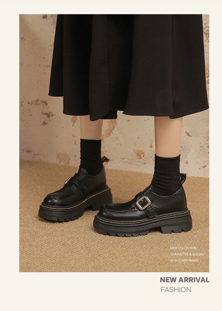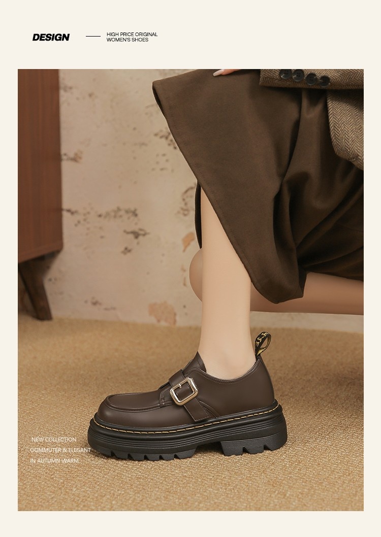 Trendy elements: Patchwork, chunky heel, belt buckle, built-in height lift
