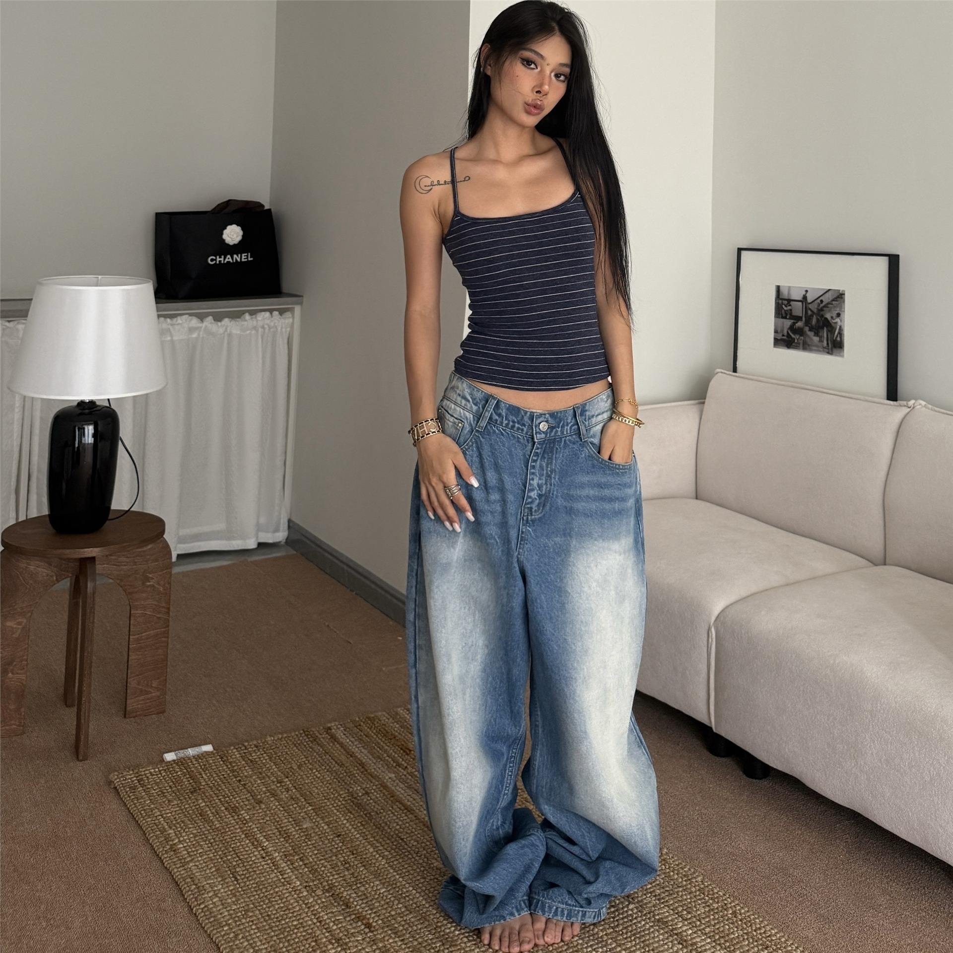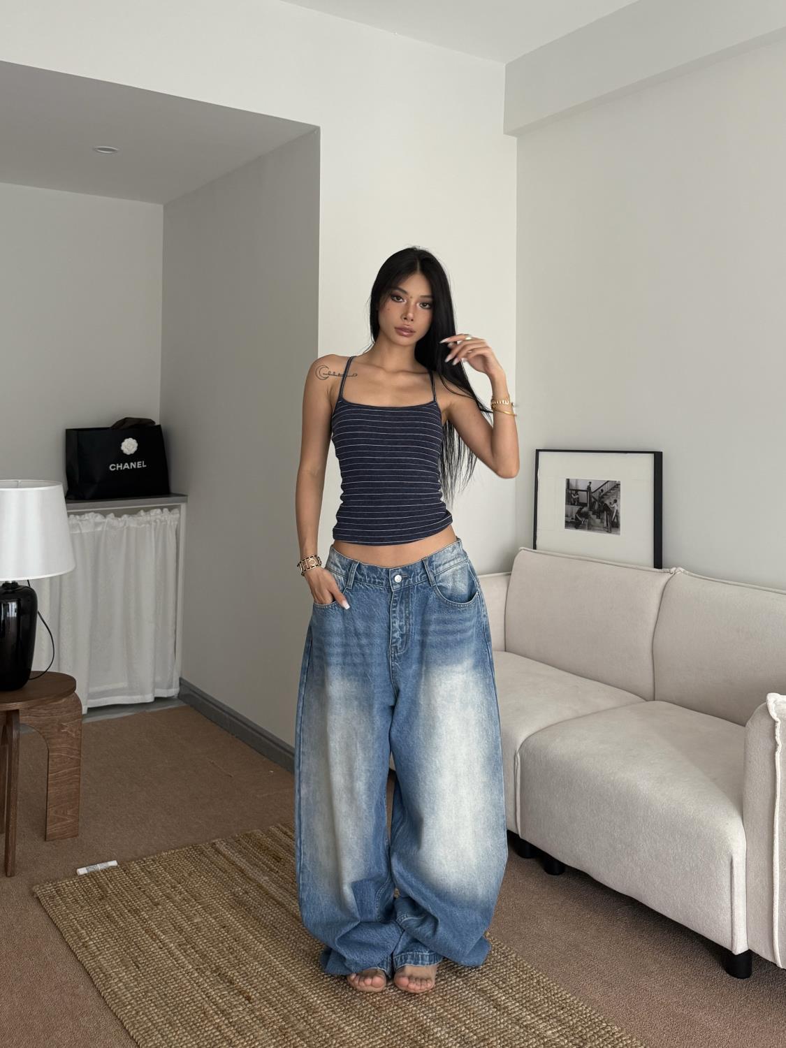 American-style Vintage Washed And Distressed Straight-leg Jeans