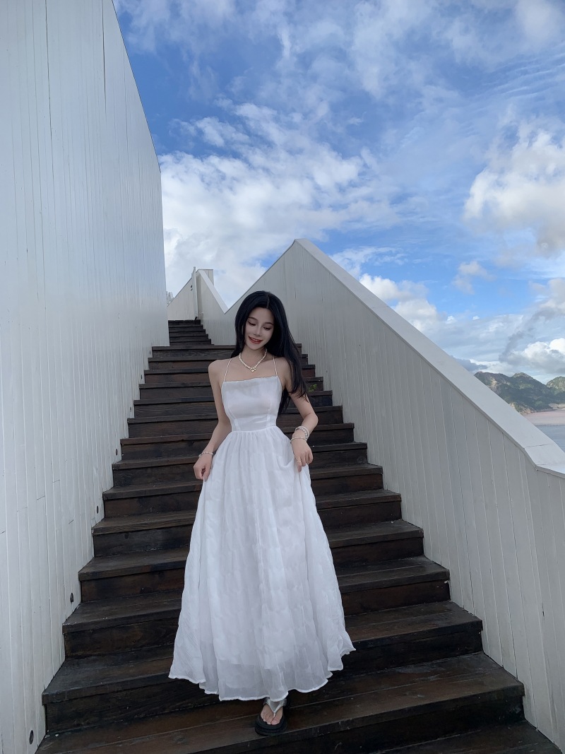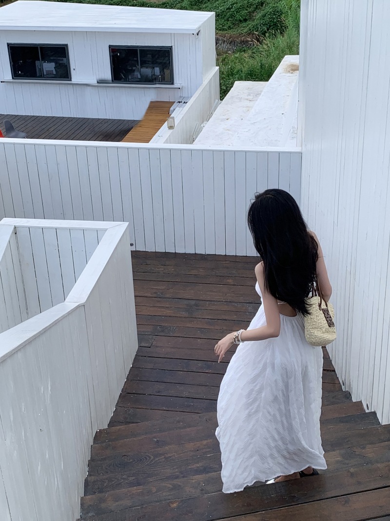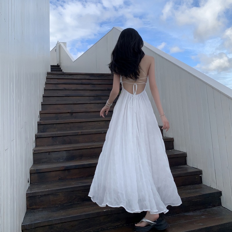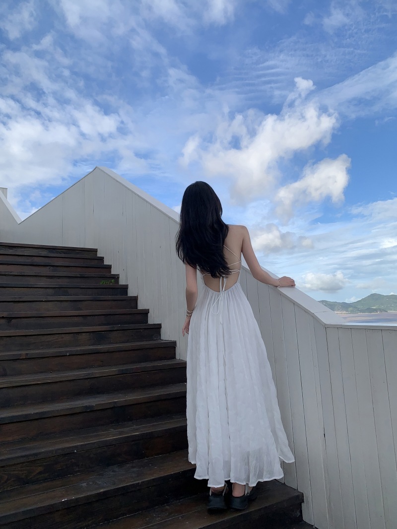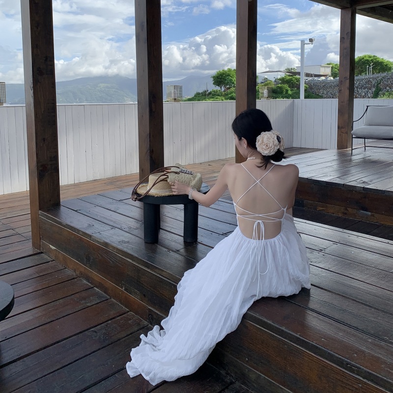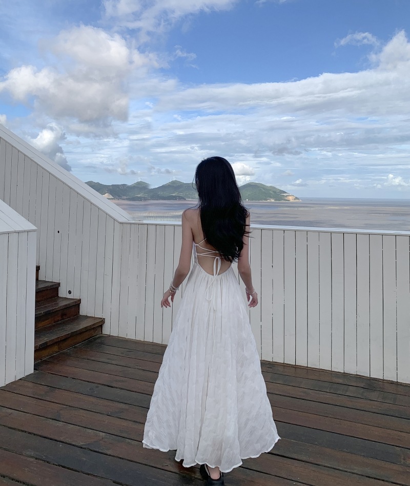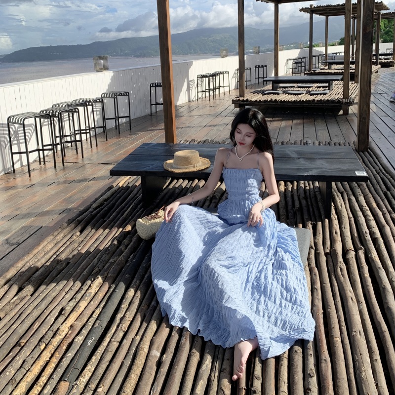 Summer Seaside Waves A Blue Sheer Vacation-style Backless Dress