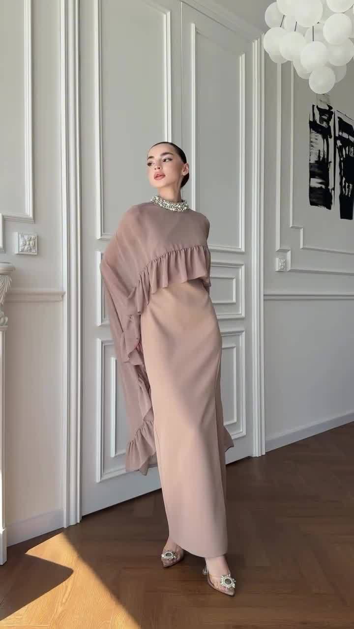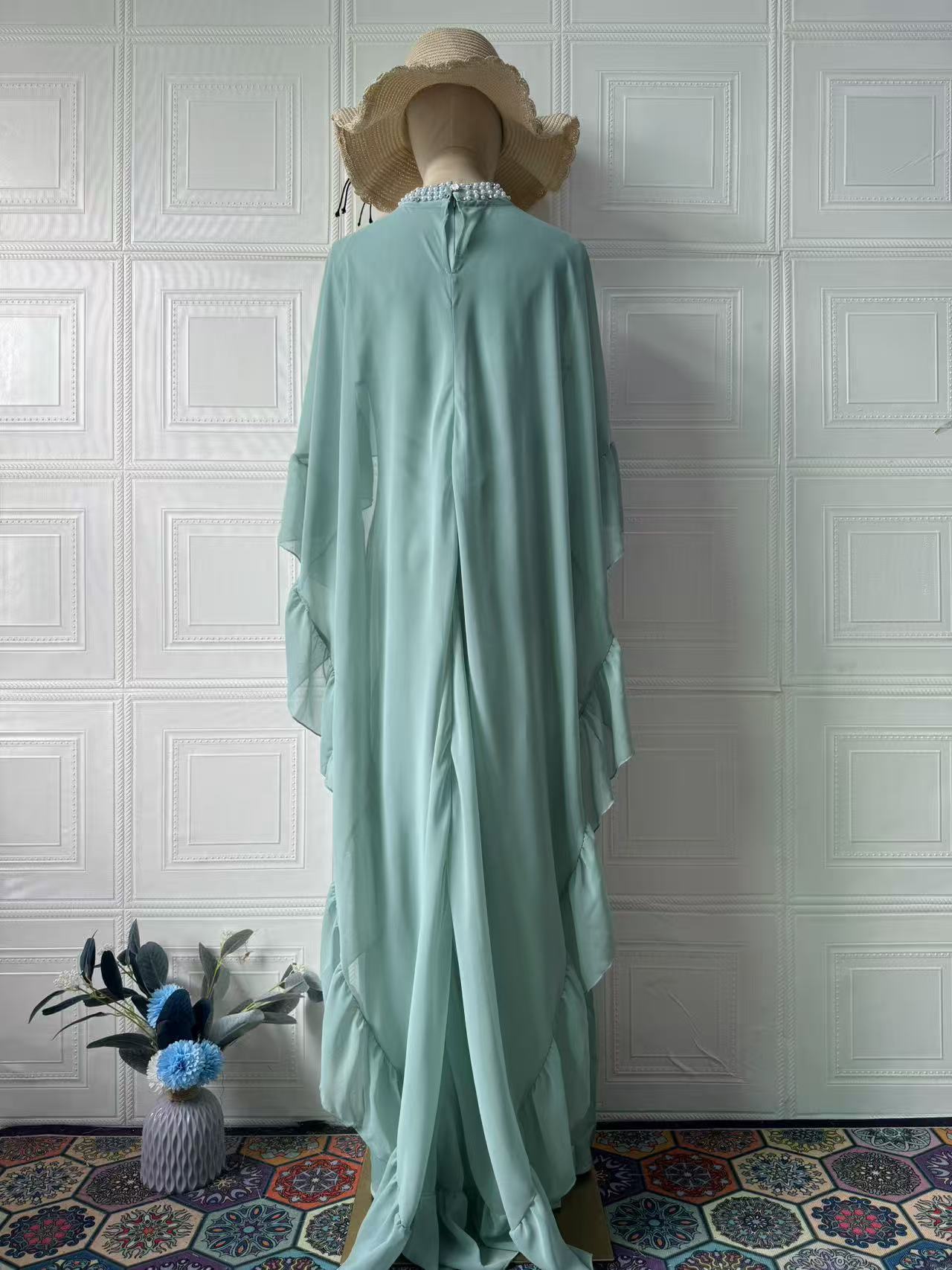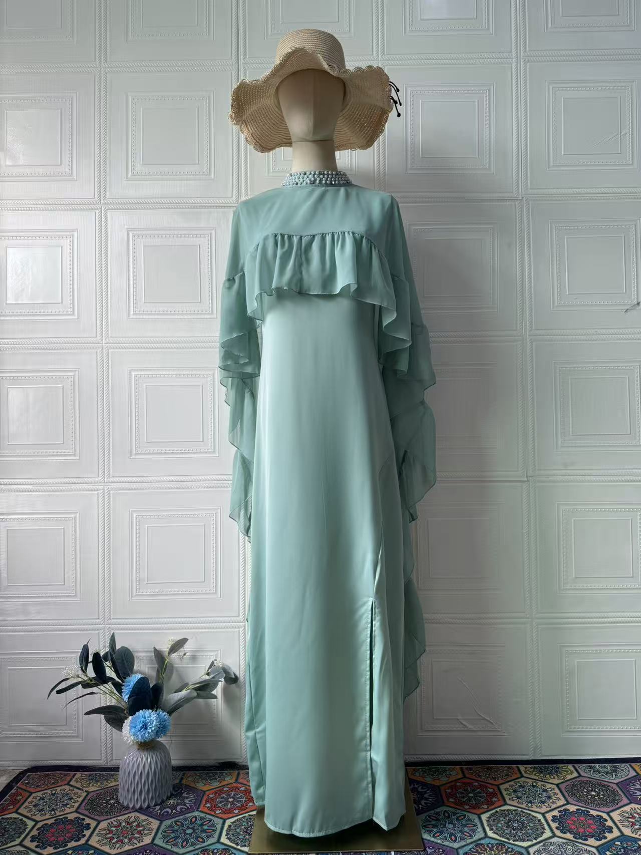 Two-piece Sleeveless Ruffled Beaded Dress Set