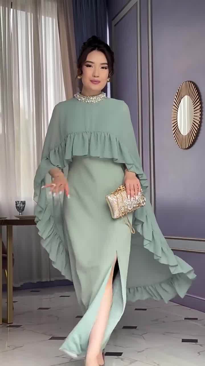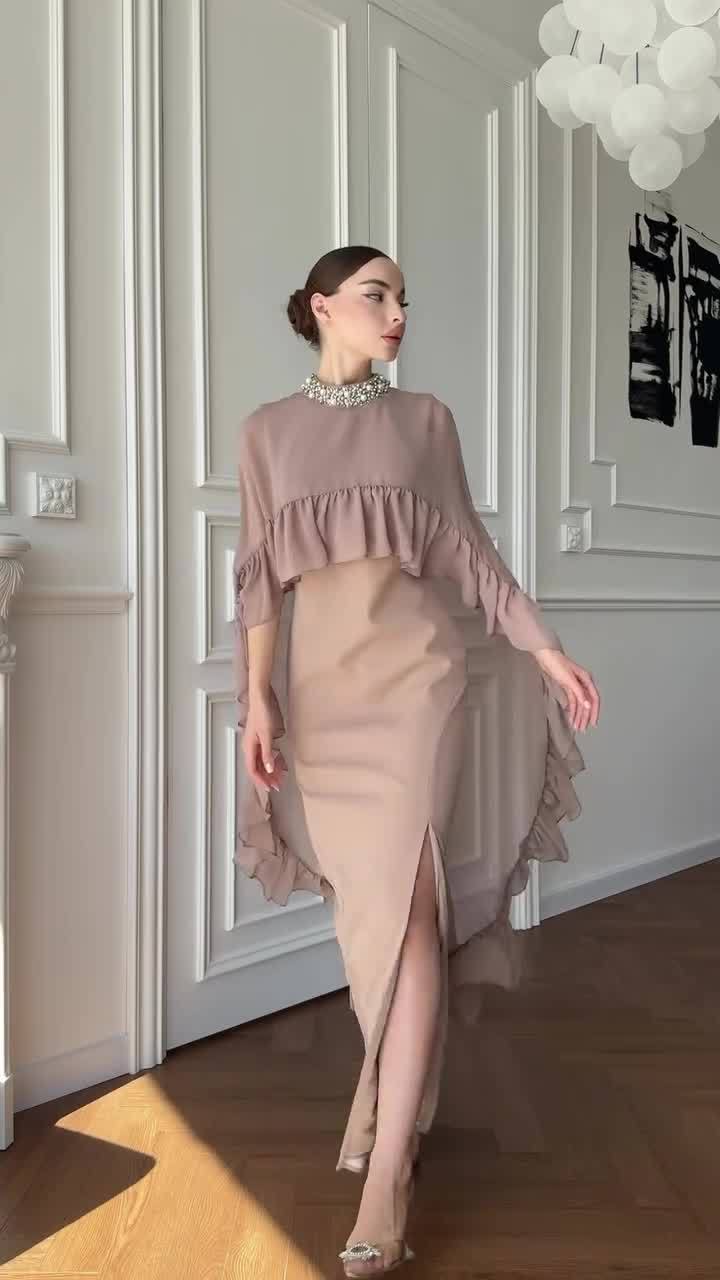 Fashion elements: Solid color, trendy design, ruffled hem, side slit